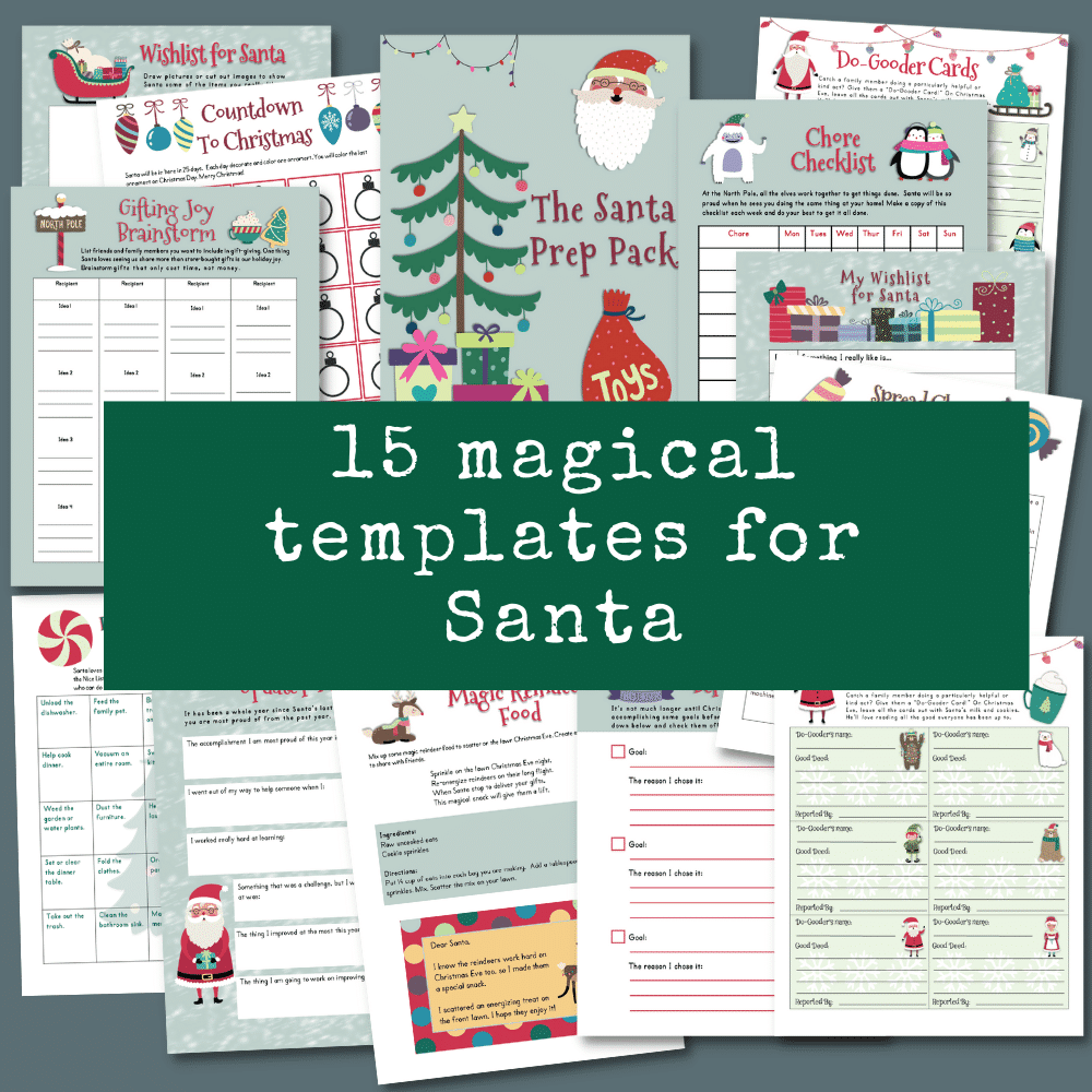 - The Santa Prep Pack: 15 pages of magical templates that will delight children, parents and (most important) Santa Claus!