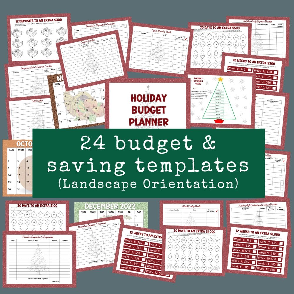 - Holiday Budget and Savings Planner (Landscape Orientation): All of the same useful templates as the above, but in landscape orientation.
