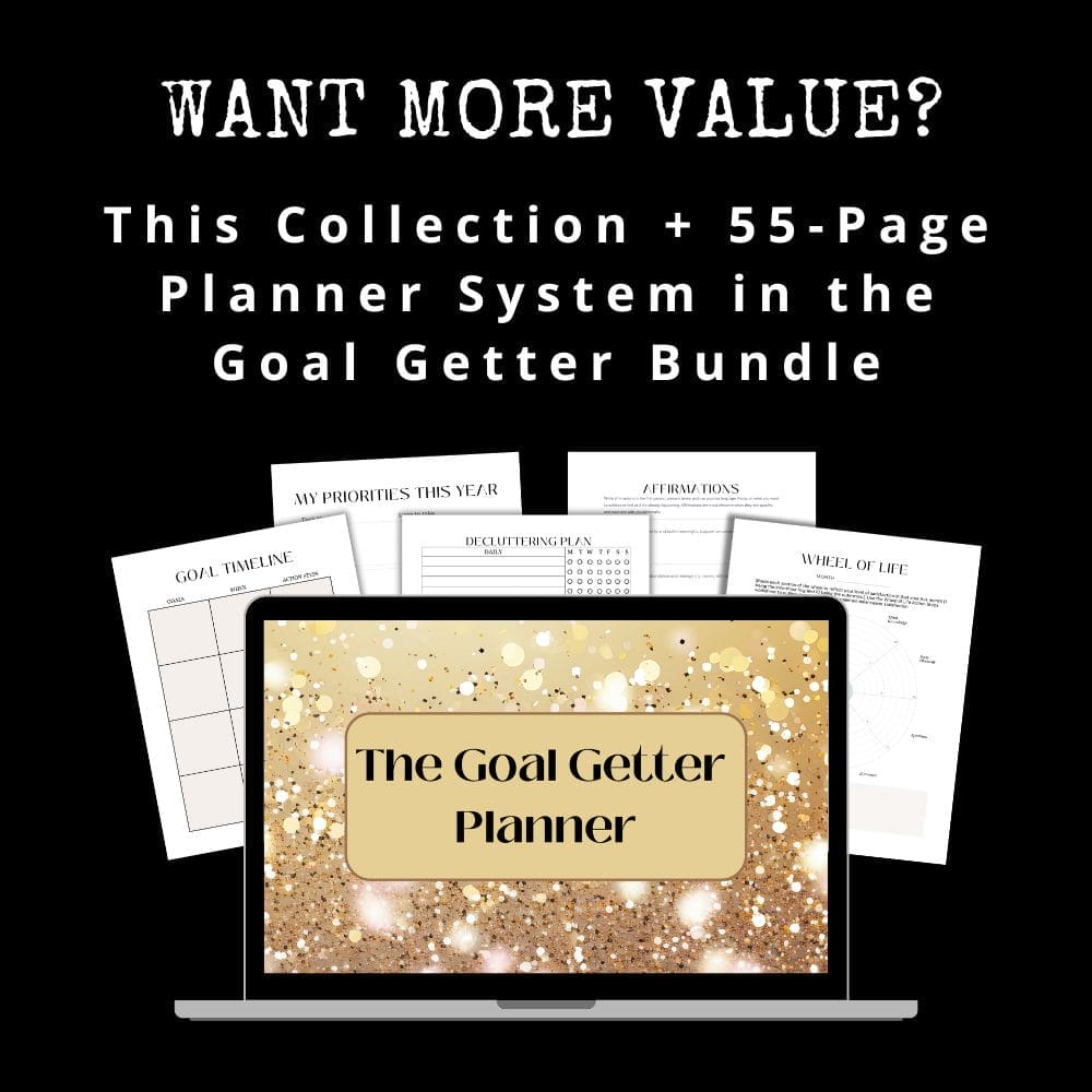 Want to put these metallic elements to work? These brushstrokes come as a bonus with our Goal Getter Planner bundle! Get the complete brushstroke collection plus 17 gilded papers and a comprehensive 55-page planner system. View the bundle here.