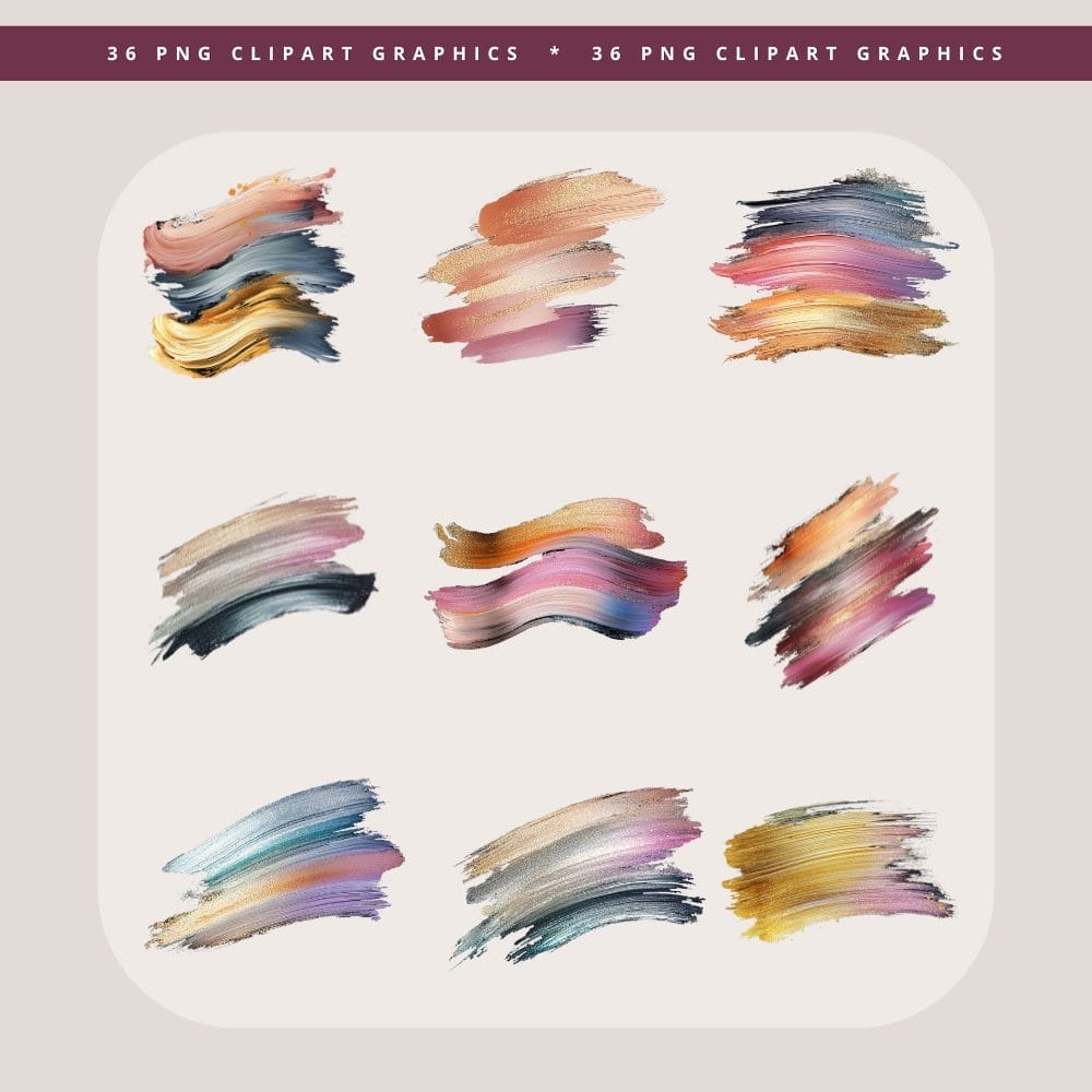 Add artistic flair to your designs with our Metallic Brushstroke Collection. This versatile set includes:
