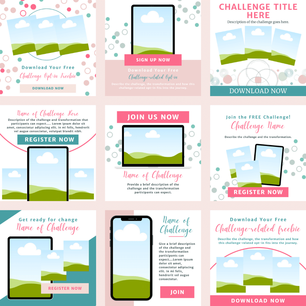 This set coordinates with our Challenge Toolkit and our “Pinterest Templates: Geometrics & Tropical Design,” but the Canva templates can easily be customized for a wide variety or promotional posts.